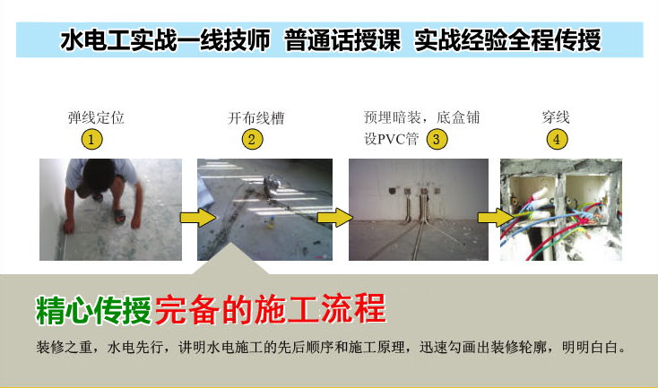 1, 家裝水路常用工具。水路施工常用材料及圖紙識讀。水路管道的安裝及要求。水路施工中的附件及潔具安裝。